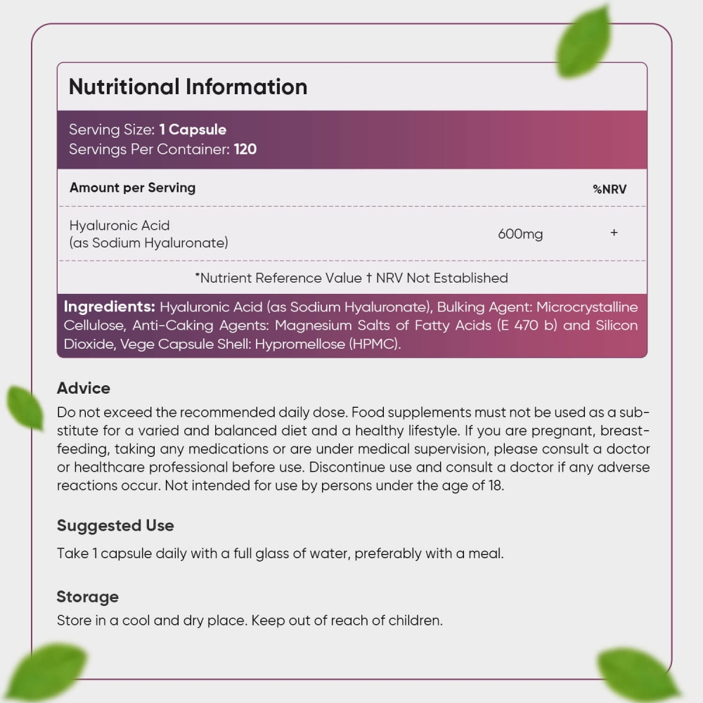- En hög daglig dos på 600 mg Hyaluronsyra kapslar