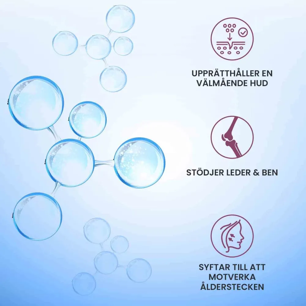 - Hyaluronsyra kosttillskott för hud, skelett och leder