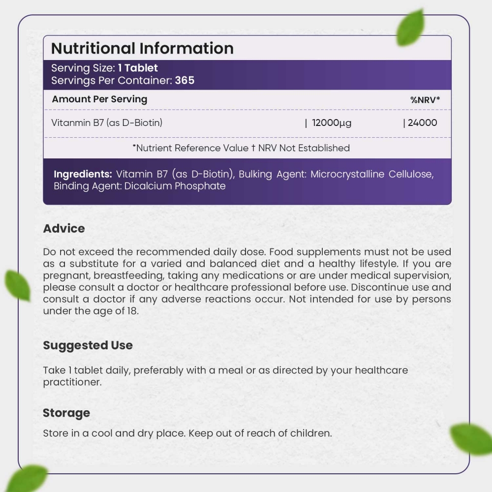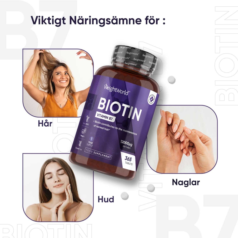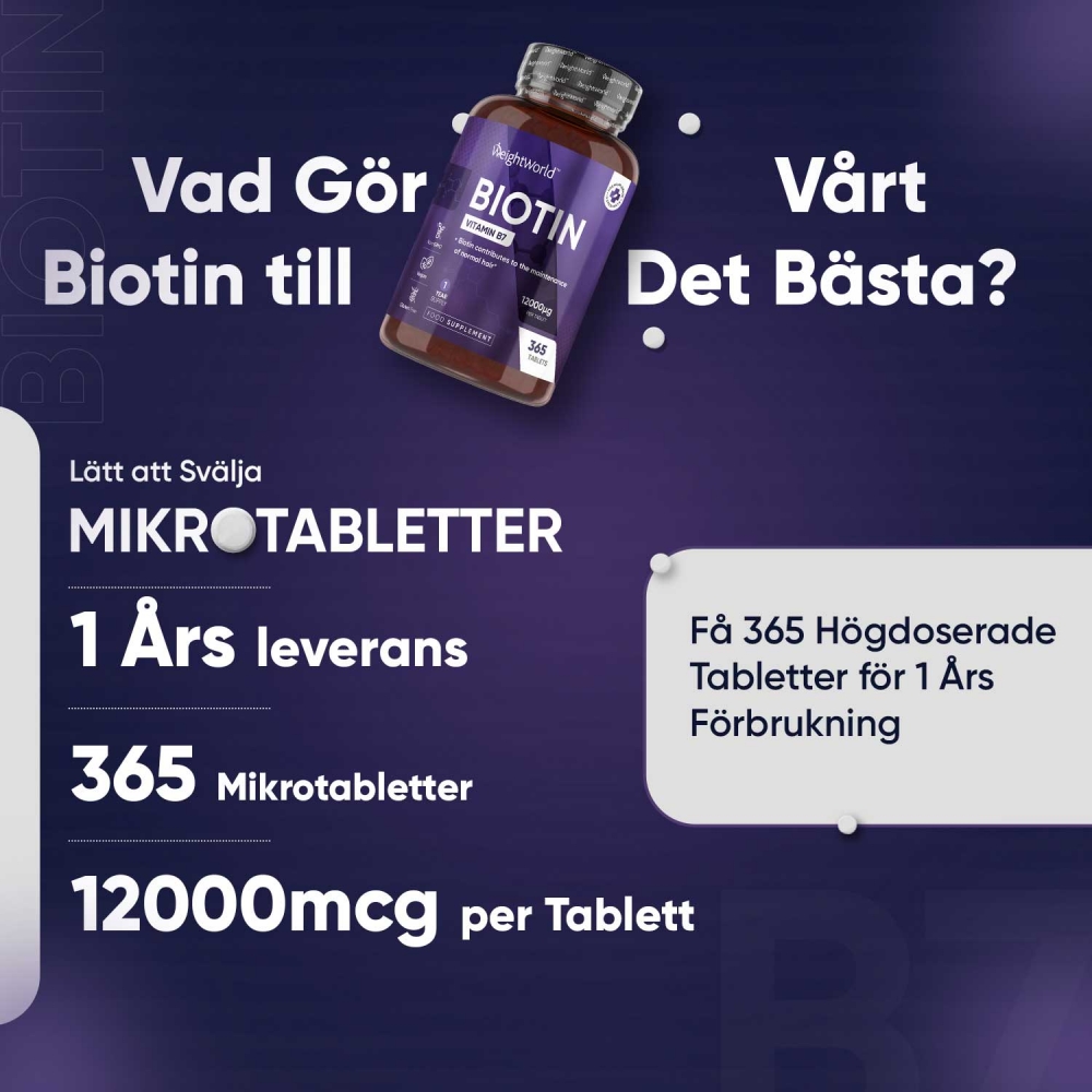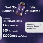 - Hög daglig dos på hela 12000 mcg vitamin B7