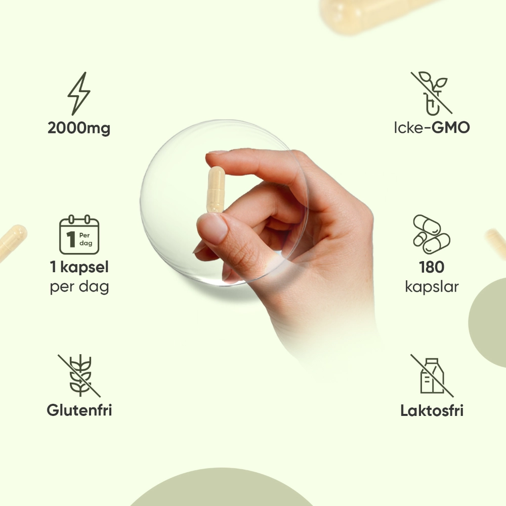 - 180 kapslar - tillräckligt för 6 månaders konsumtion