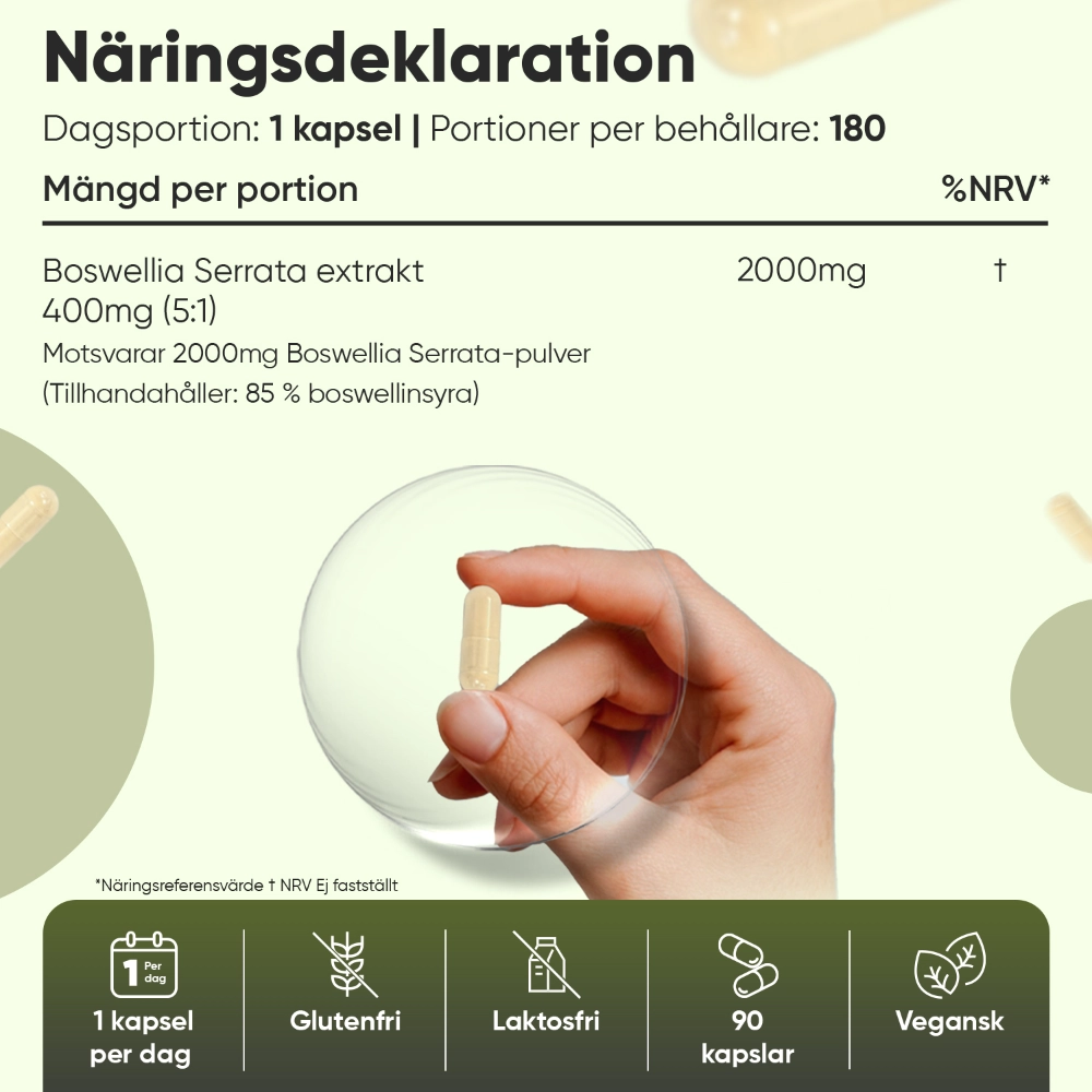 - Hög daglig dos på 2000 mg boswellia serrata