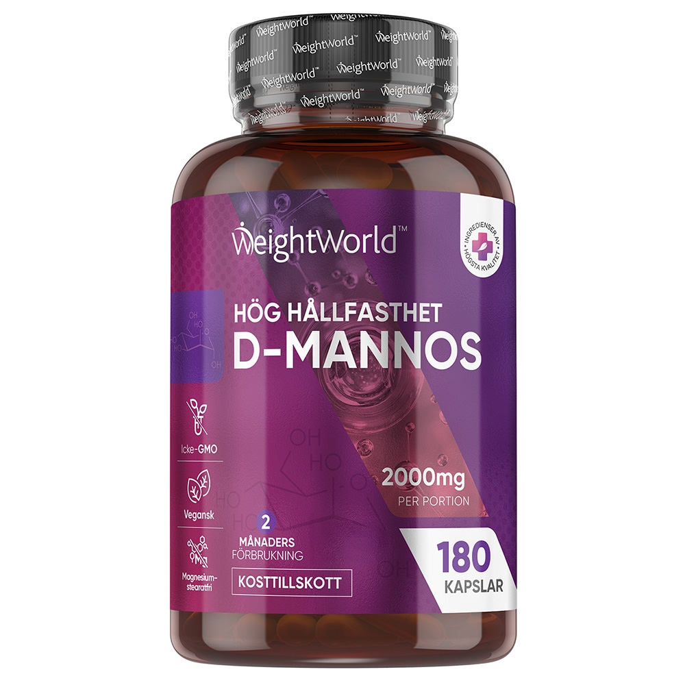 - Högt innehåll av D-mannose - så mycket som 2000 mg