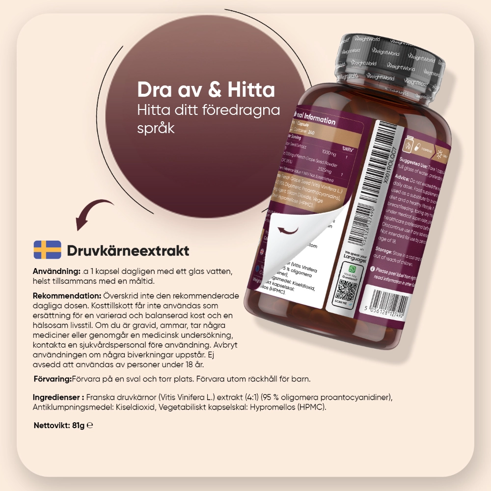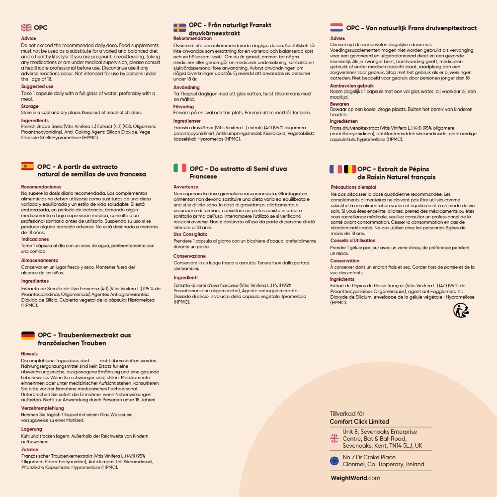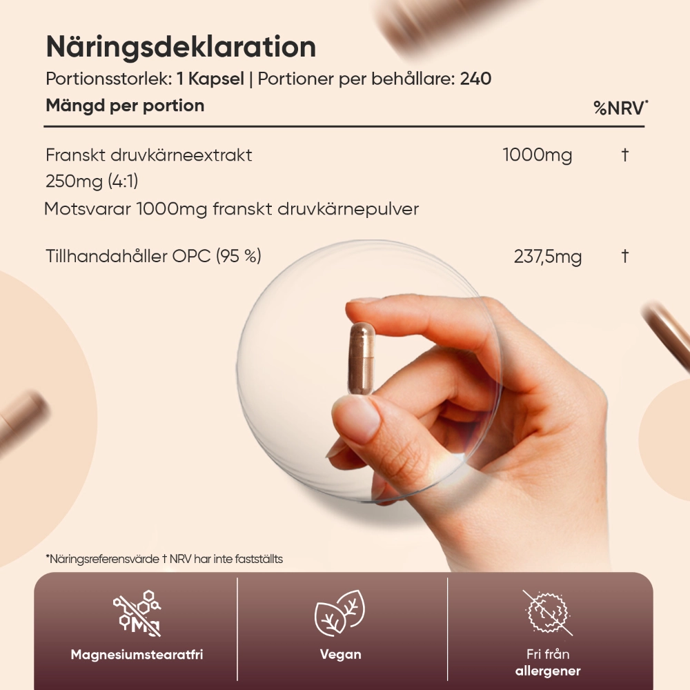 - Innehåller OPC från druvkärnor