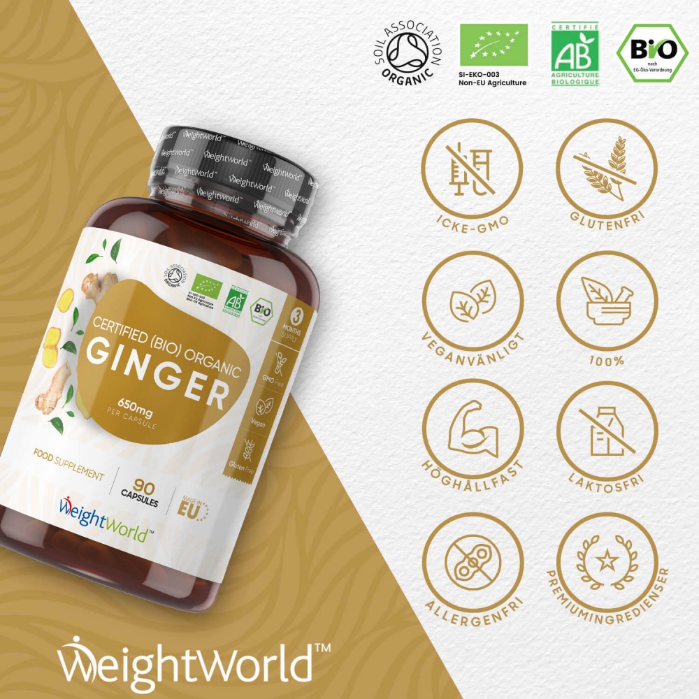 - Ekologiska ingefära kapslar med hela 650 mg dos