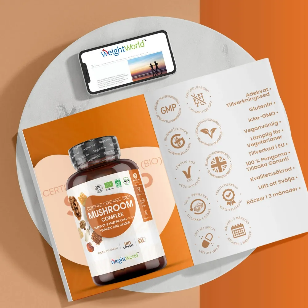 Det är just därför vi på WeightWorld har skapat Ekologiska Svamp Kapslar, som innehåller 7 olika svampar för att stödja ditt immunförsvar, leder, nervsystem, matsmältning samt blodsocker- och kolesterolnivåer, och mycket mer.