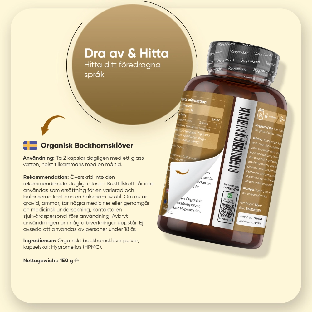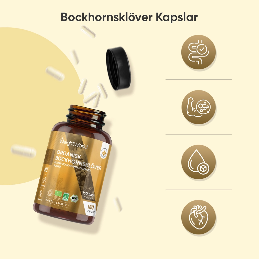- Hög daglig dos på 1500 mg bockhornsklöver