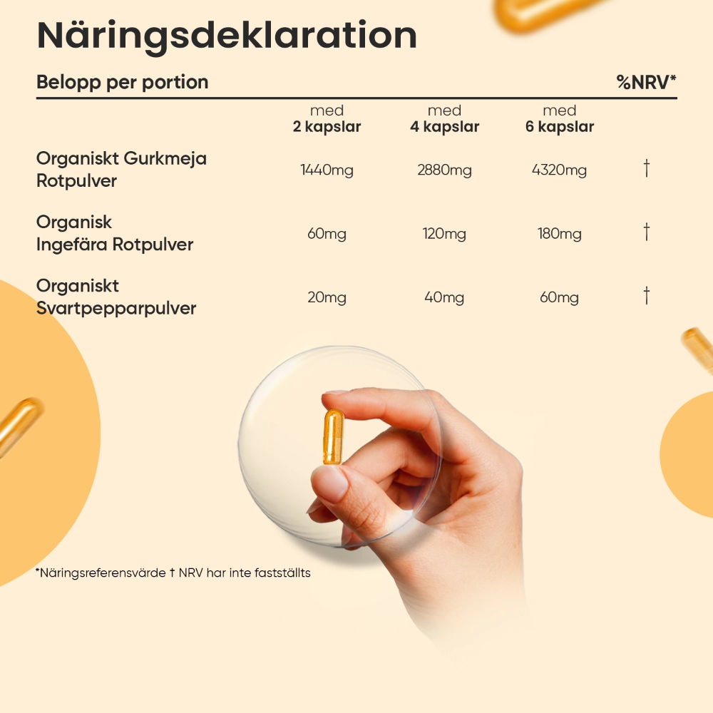 - Fylld med Ekologisk gurkmeja, svartpeppar och ingefära