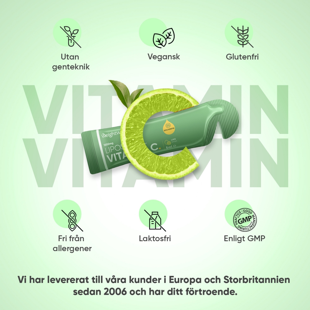 Hos WeightWorld har vi med vårt flytande liposomal C-vitamin gjort det enkelt (och gott!) för dig att få ditt dagliga C-vitamintillskott.