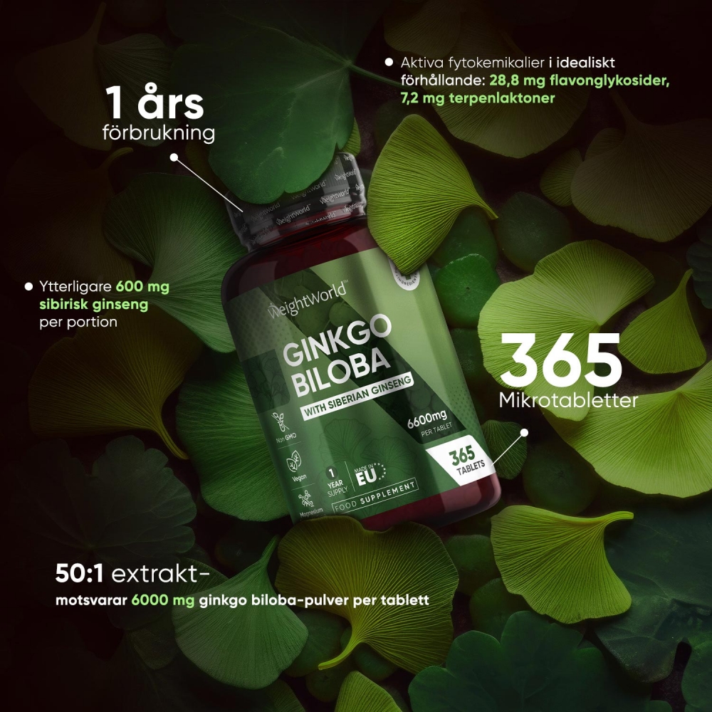Det är just därför många väljer att ta tillskott med just ginkgo biloba och här på WeightWorld har vi berikat våra ginkgo biloba tabletter med sibirisk ginseng för att ge dig ett ännu bättre tillskott.