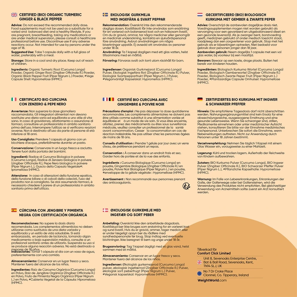 Gurkmeja kapslar från maxmedix är ett 100 % ekologiskt kosttillskott berikat med svartpepparextrakt (piperin) och ingefära som båda bidrar till att förbättra upptaget av den aktiva substansen i gurkmeja, curcumin, så att du får ut det mesta av kosttillskottets aktiva ingredienser.