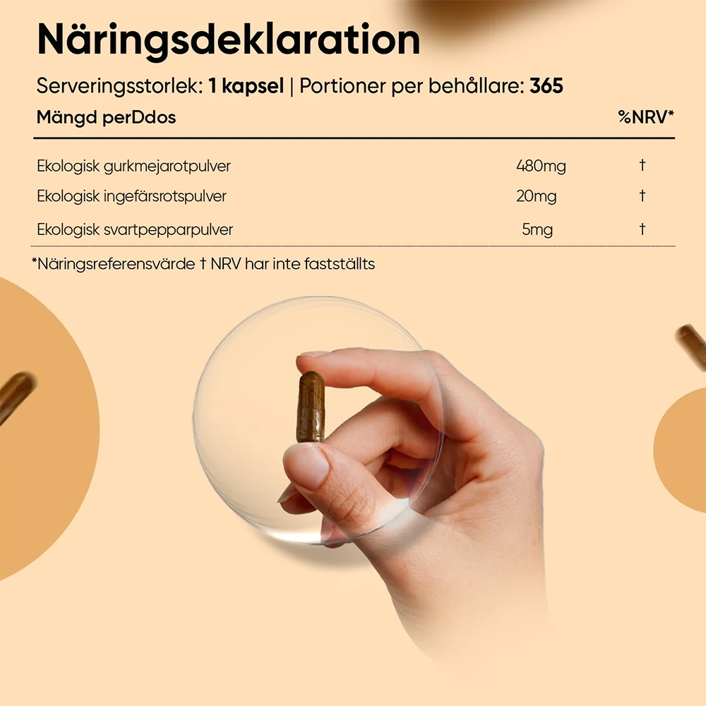 - 365 kapslar - gurkmejatillskott för 1 års användning