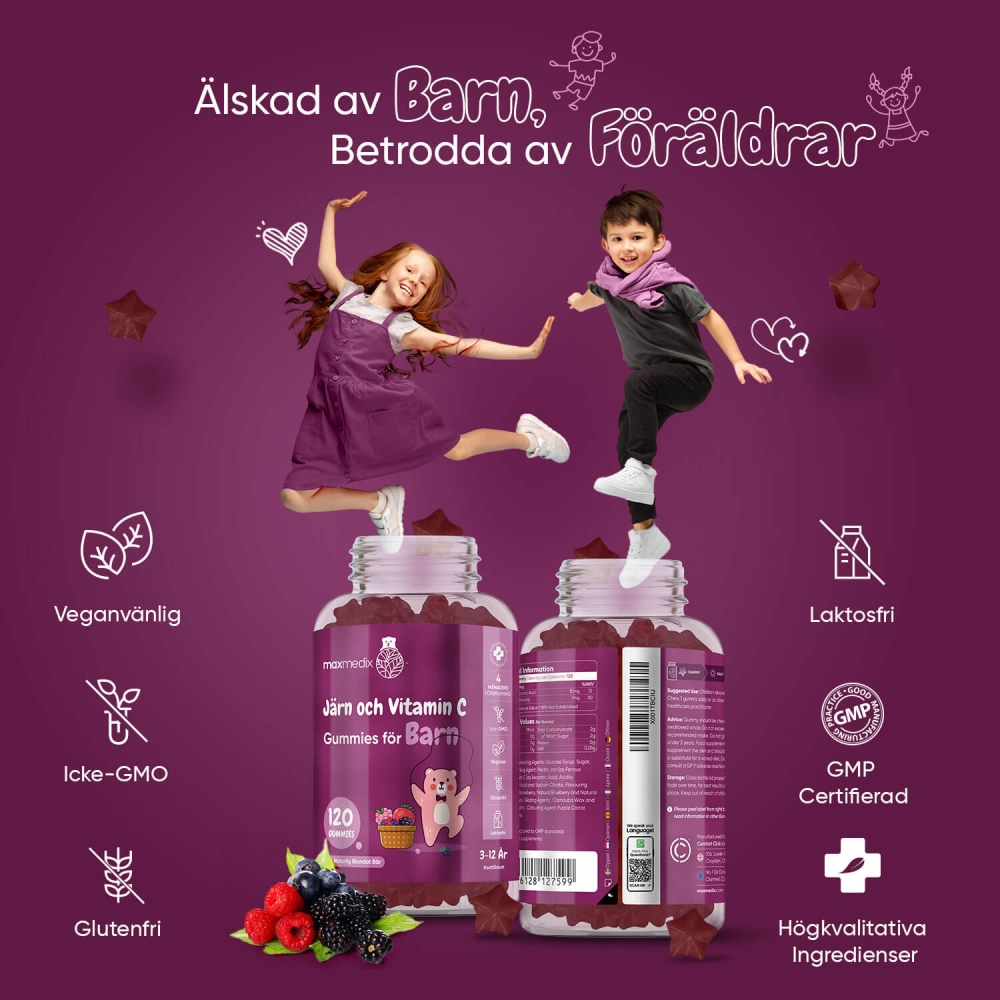 - Järn- och C-vitamingummi för barn i åldrarna 3-12 år