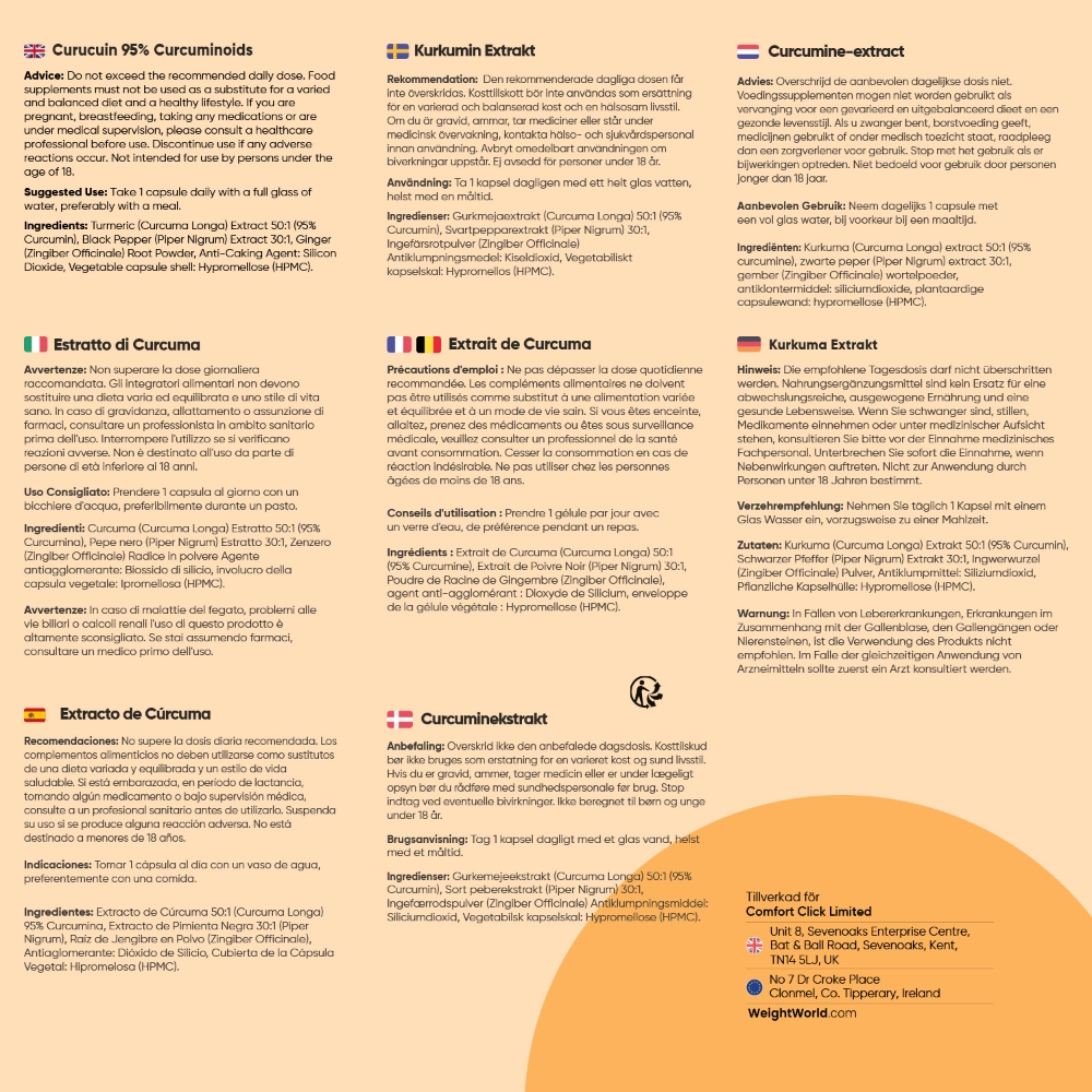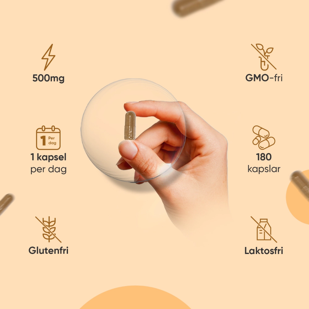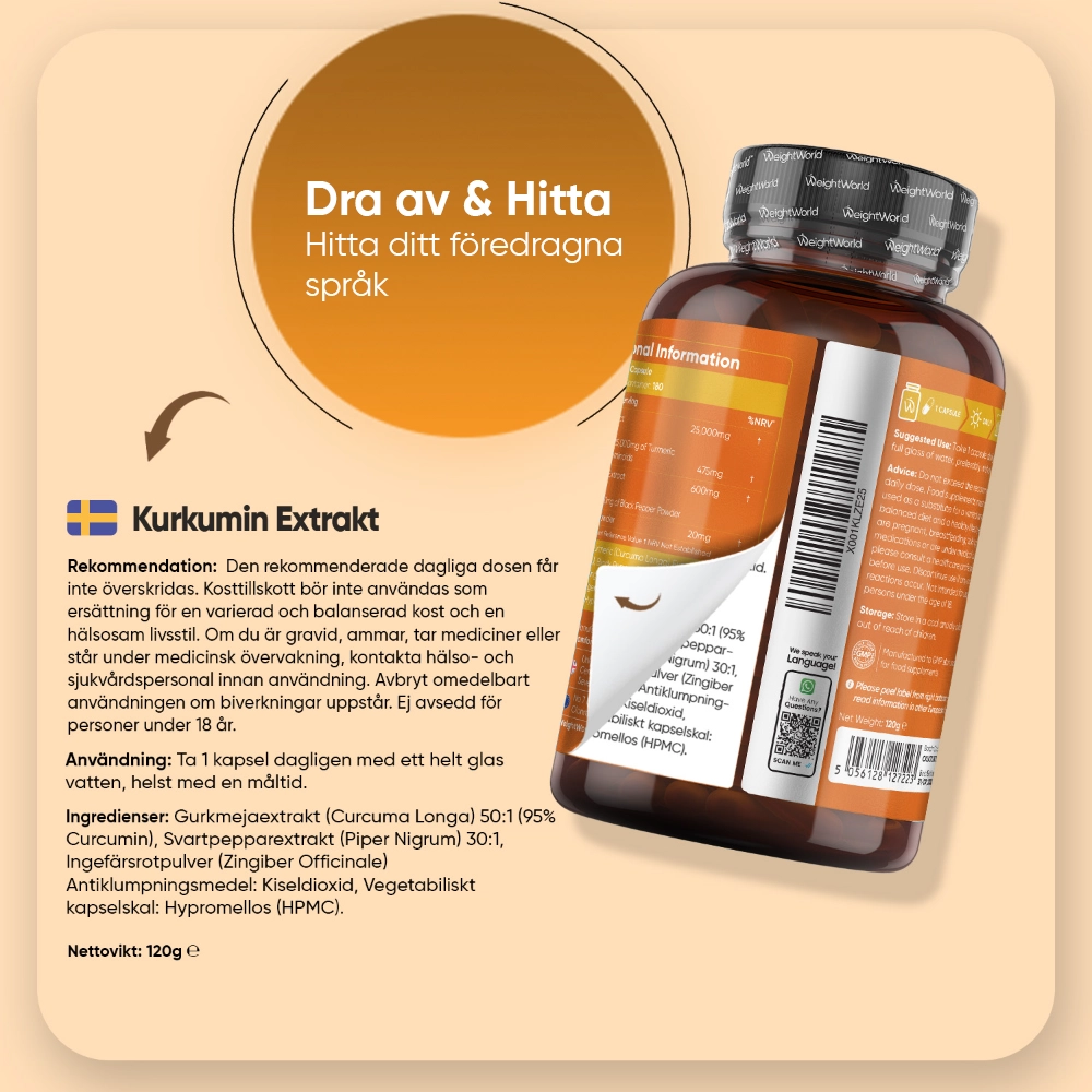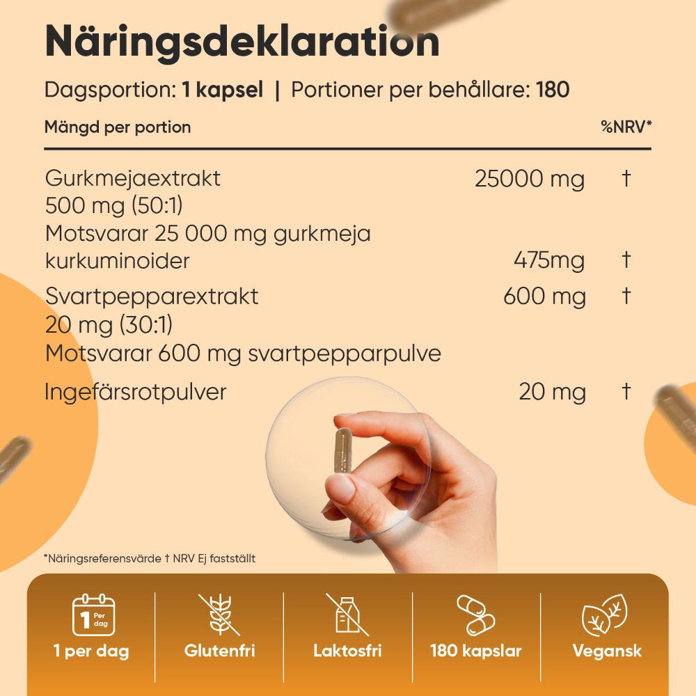 - Innehåller gurkmejaextrakt med 95% kurkumin