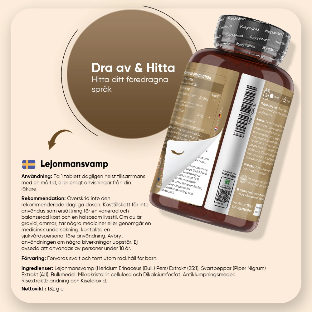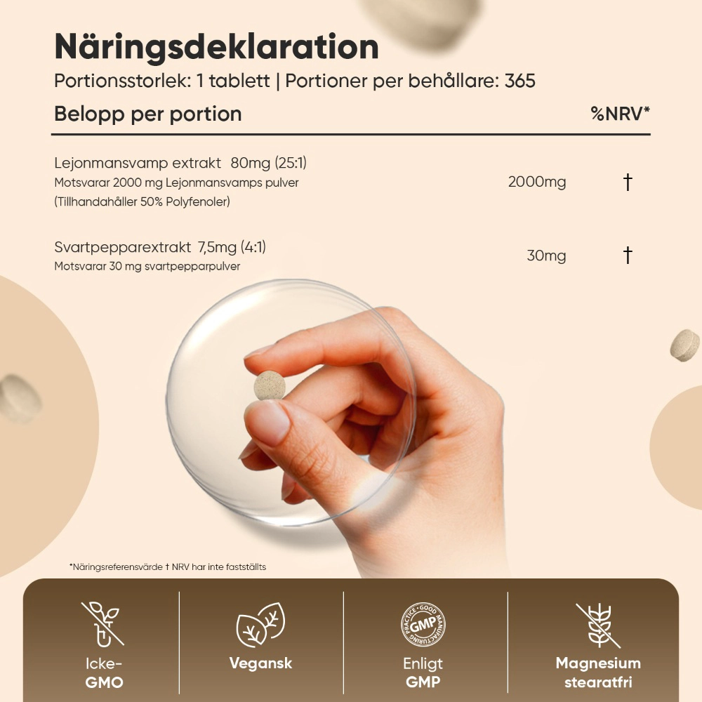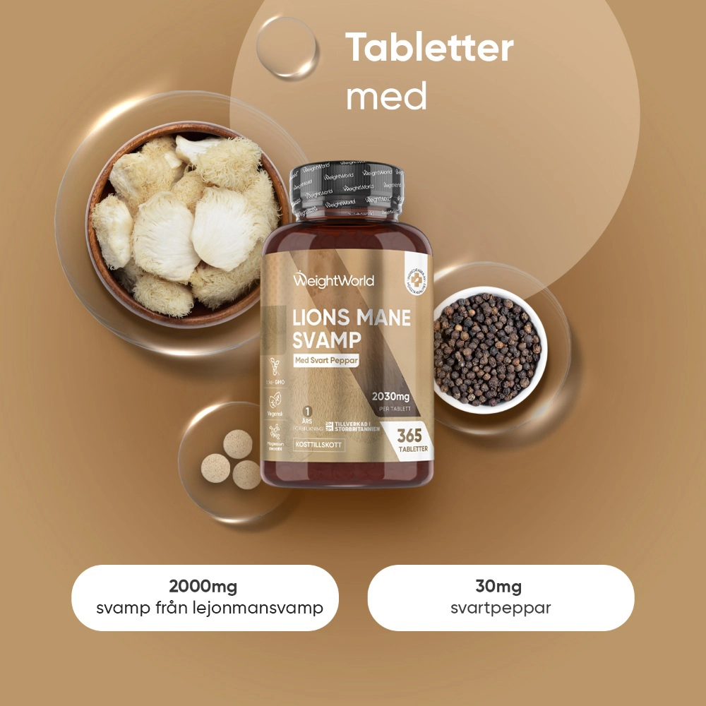 - Hög daglig dos på 2000 mg lejonmansvamp