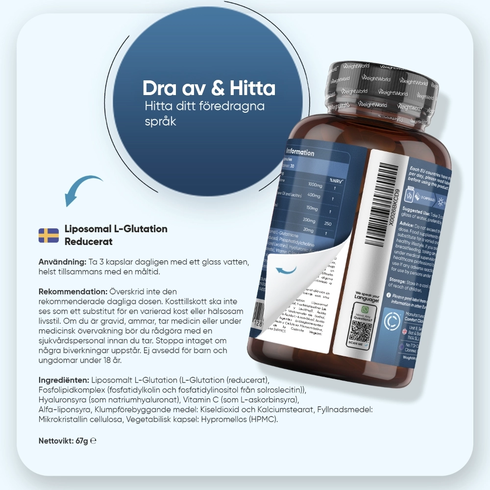 - 1000 mg L-Glutation per daglig dos