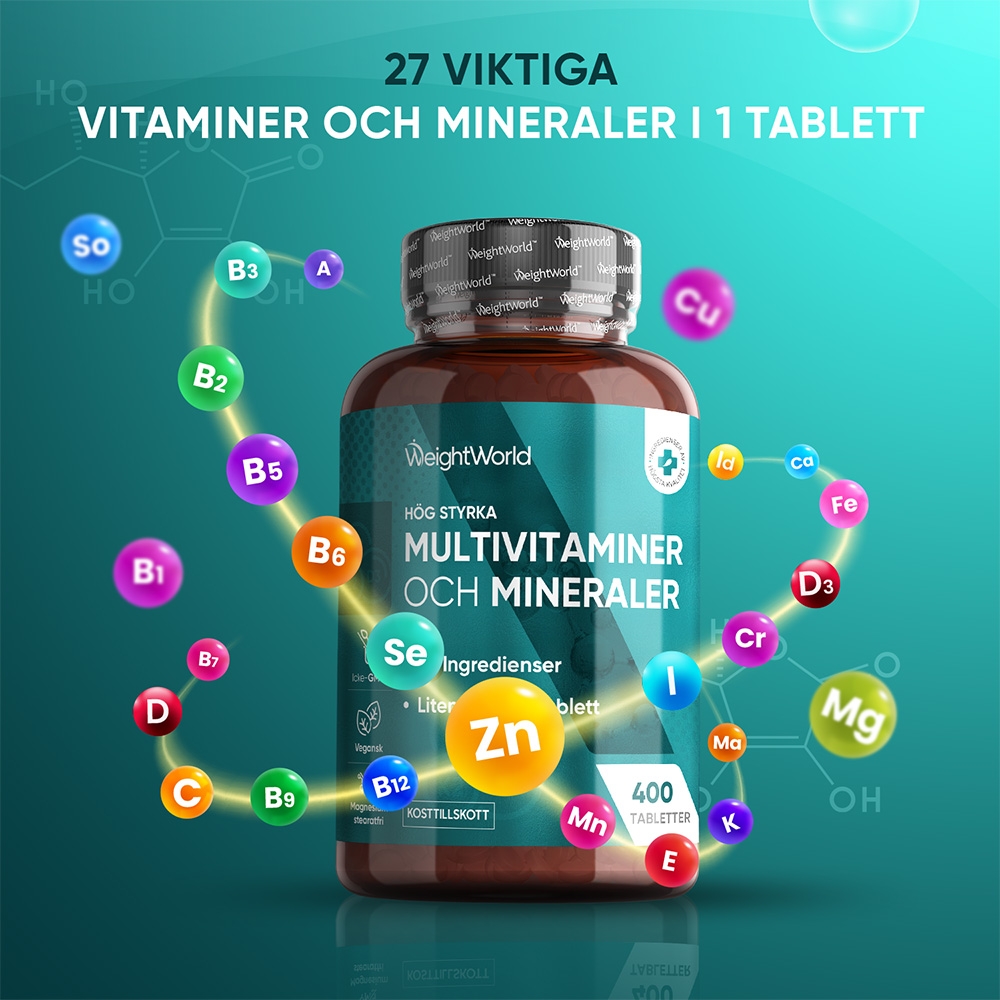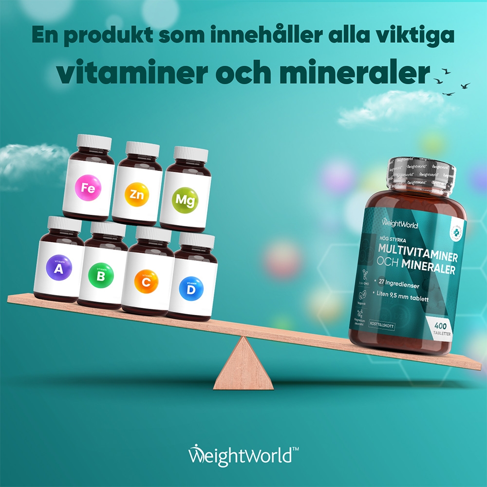 WeightWorlds Multivitaminer och Mineraler är ett kosttillskott som är tänkt att tas dagligen för att ge dig de bästa förutsättningarna för att undvika vitamin- och mineralbrist.