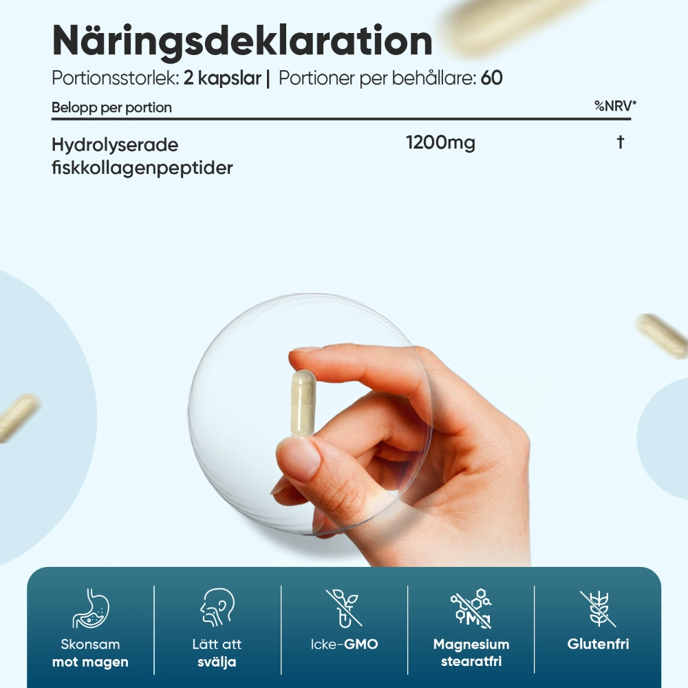 - Hela 1200 mg marint kollagen per dos