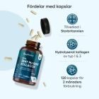 Dessa kollagen kapslar ger en hög halt av hydrolyserat NatiCol® marint kollagen - hela 1200 mg per daglig dos. Tillskottet erbjuder därför ett praktiskt alternativ till kollagenpulver, speciellt i en hektisk och stressig vardag. En burk innehåller 120 kapslar och räcker i hela 2 månader vid rekommenderad daglig användning. Tillskottet är dessutom gluten- och laktosfritt.