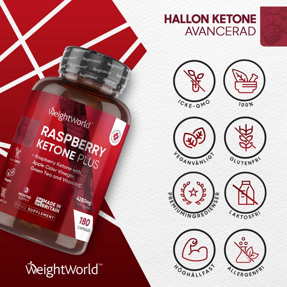 Hos WeightWorld har vi tagit hallonketoner och kombinerat dem med andra naturliga superfoods, så att du får ett komplett näringstillskott för att ge din viktminskning en knuff i rätt riktning. Den stora populariteten för hallonketoner som bantningsprodukt beror på att ketoner bidrar till din viktminskning genom att konsumera fettreserver som bränsle, vilket kan ge din ämnesomsättning och fettförbränning en naturlig boost.