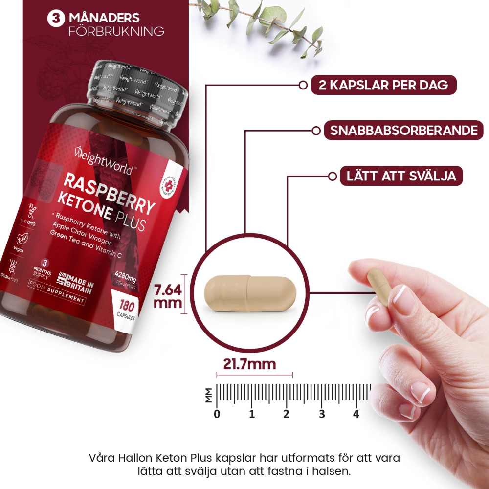 Vårt Raspberry Ketones Plus-tillskott är ytterligare berikat med äppelcidervinäger, vilket flera studier pekar på bidrar positivt till viktminskning, blodsocker och fettförbränning, samtidigt som C-vitamin har en effekt på din fettförbränning. Sist men inte minst innehåller tillskottet grönt te, som förutom sitt höga innehåll av antioxidanter även har ett högt innehåll av aktiva ämnen som bidrar till att ge din fettförbränning en boost.