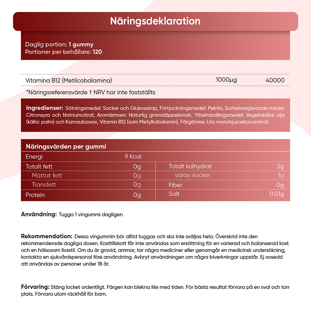 - 120 stycken B12 vingummin - räcker till 4 månader