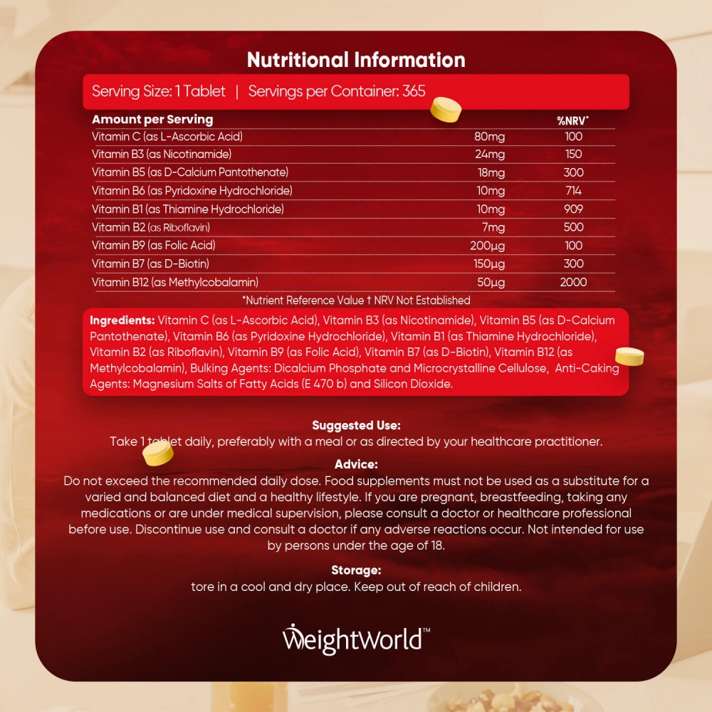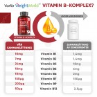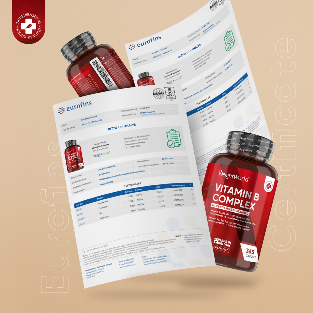WeightWorlds B-vitamin komplex innehåller alla 8 B-vitaminer som spelar en otroligt viktig roll för många av kroppens funktioner. Vårt vitamin B komplex är också berikat med vitamin C, och de olika vitaminerna bidrar till: