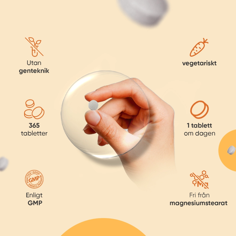 - Ta 1 tablett dagligen - tillräckligt för 1 års förbrukning