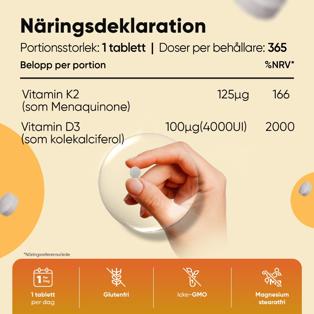 Vitamin D3 + K2 är en kombination av fettlösliga vitmainer som oftast kombineras i kosttillskott.